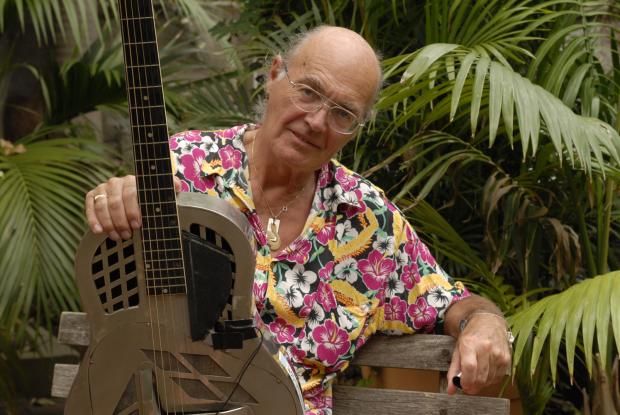 The colourfully shirted UK born guitarist Mike Cooper’s music spans blues, ambient and exotica. His mixed media work with films or texts is not so well known, perhaps, but it’s no less engaging. “For several years,” he says. “I have been working on a number of song texts which are the result of applying cut-up techniques, similar to those used by William Burroughs, Brion Gysin and British artist Tom Phillips, using two of Thomas Pynchon’s novels, Gravity’s Rainbow and V, as source materials. Both novels that are set in the years of the second World War, when I was born.”