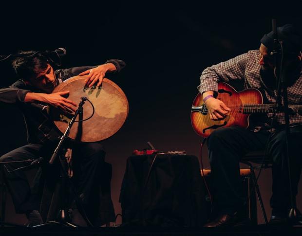 The duo Shohin Qurbon (Dushanbe) and Denis Sorokin (Saint Petersburg) was formed in early 2023, blending traditional Tajik sounds with experimental improvisation. At the core of their music lies falak, a unique Pamir musical tradition where performers direct their joys and sorrows not to the audience, but to the sky. Falak is a monodic genre usually performed by a solo musician accompanied by a dutar or rubab. Denis and Shohin improvise falak using unusual instrumentation – on electroacoustic guitar and doira. In 2023, the duo performed at Stihia (Bukhara) and Topot/Bahor (Tashkent) festivals. In 2024, they appeared at the Voices Festival (Berlin) and MOC Fest (Tashkent), where they were the sole representatives of Tajikistan. That same year, they released their album Tira-Tira on the Topot label.