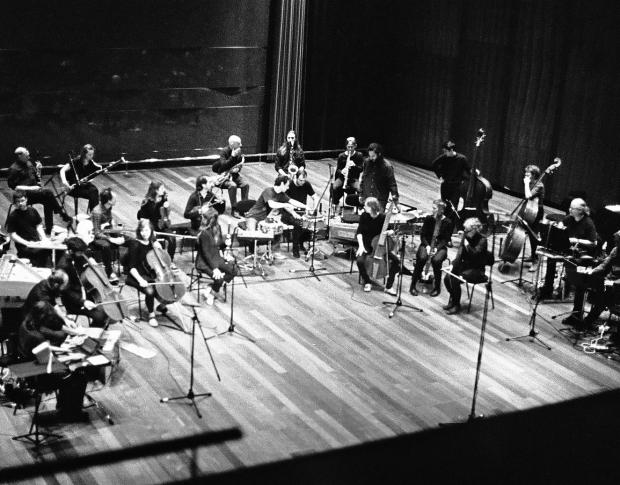 Insub Meta Orchestra (IMO) are a large ensemble centred upon experimental and electroacoustic practice. Founded in 2010 by Swiss percussionist Cyril Bondi and Laurent Peter aka d’incise, they have around 50 permanent members. With individual gestures subsumed into the production of global sonic states, their music blurs the boundaries of composition and improvisation, exploring themes of duration, silence and near silence, and non-hierarchical relations.