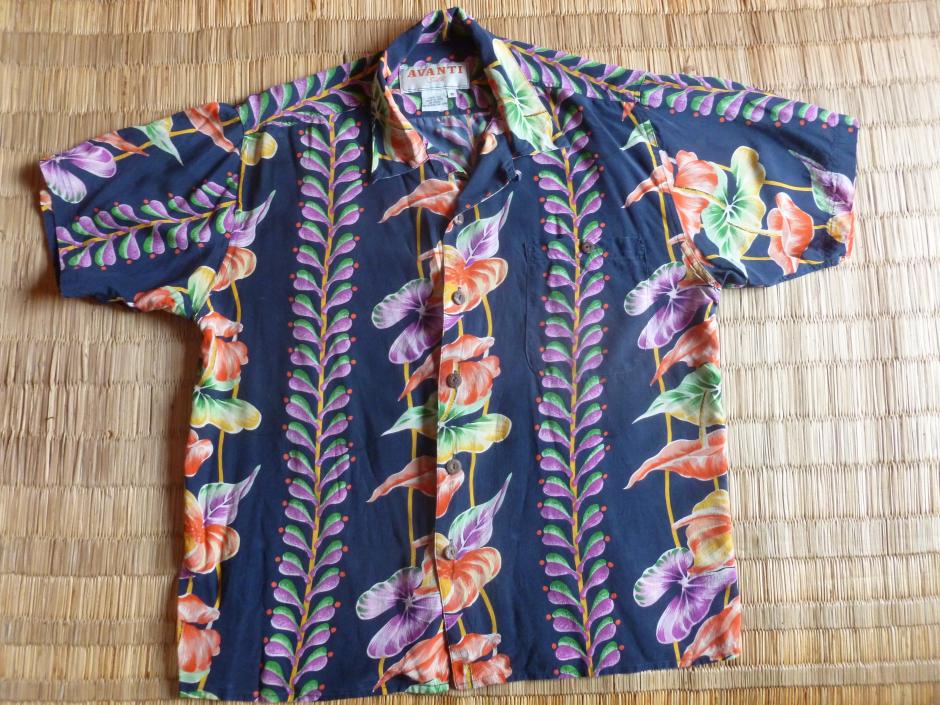 This is a real Hawaiian silk shirt bought in Hawaii by my partner, continuing a tradition established when we first met of exchanging Hawaiian shirts as presents. She bought it on Oahu and managed to hide it from me for six months until my birthday, and gave it to me at the end of our first three month trip together. It is a copy of a 1936 shirt featuring an Anthuriums flower design.