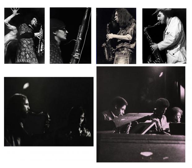 Hunter College NY, 1971: Clockwise from top left: Ken Mueller & Bobby Zankel, Karen Kambitsis, David Birkin, Craig Purpura, Jimmy Lyons, Herman Milligan & Bobby Zankel, and Richard Keene & Bob ‘Beko’ Kaufman